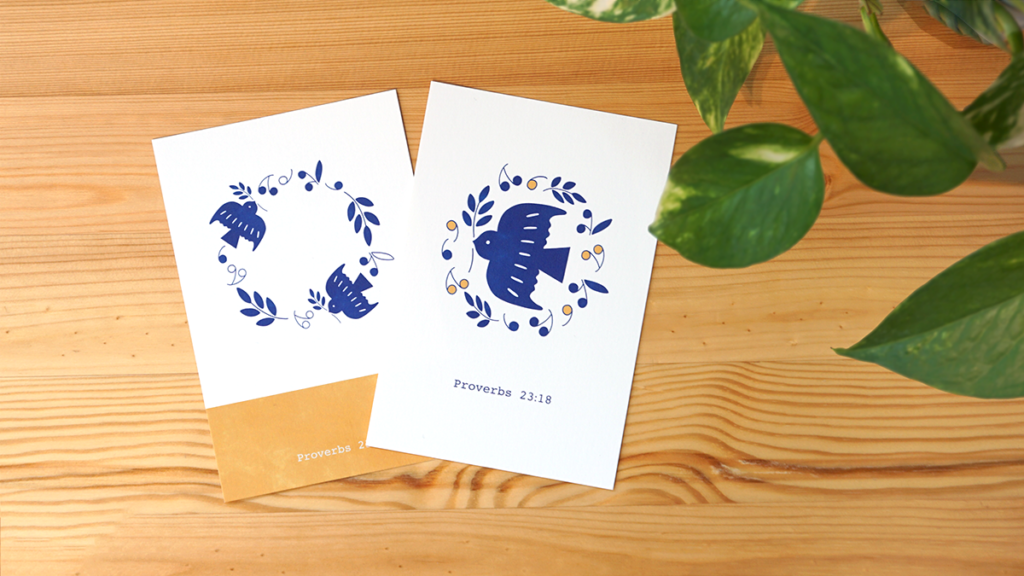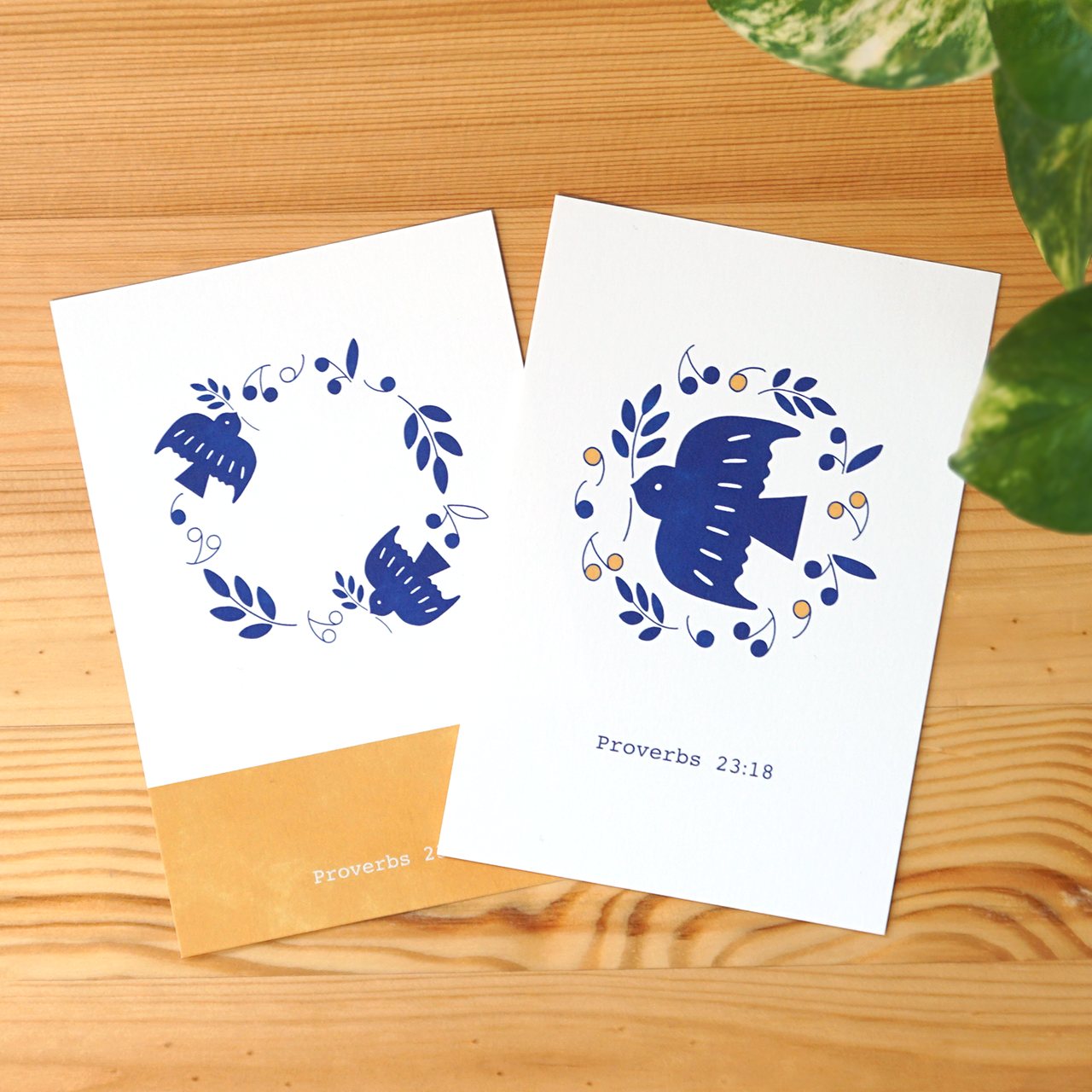 どちらもハトとオリーブのシルエットがあしらわれており、こっくりした黄色がアクセントになっています。